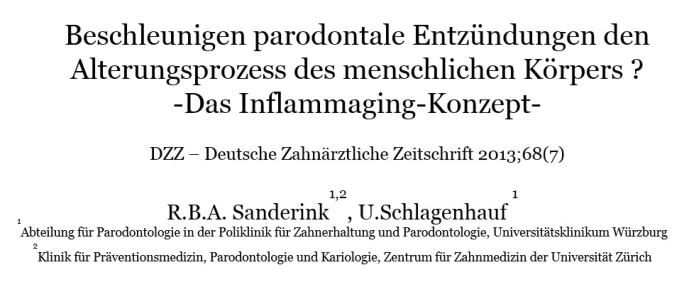 das bedeutet im Klartext, dass Parodontose und Entzündungen an Implantaten zum Inflammaging, d.h.